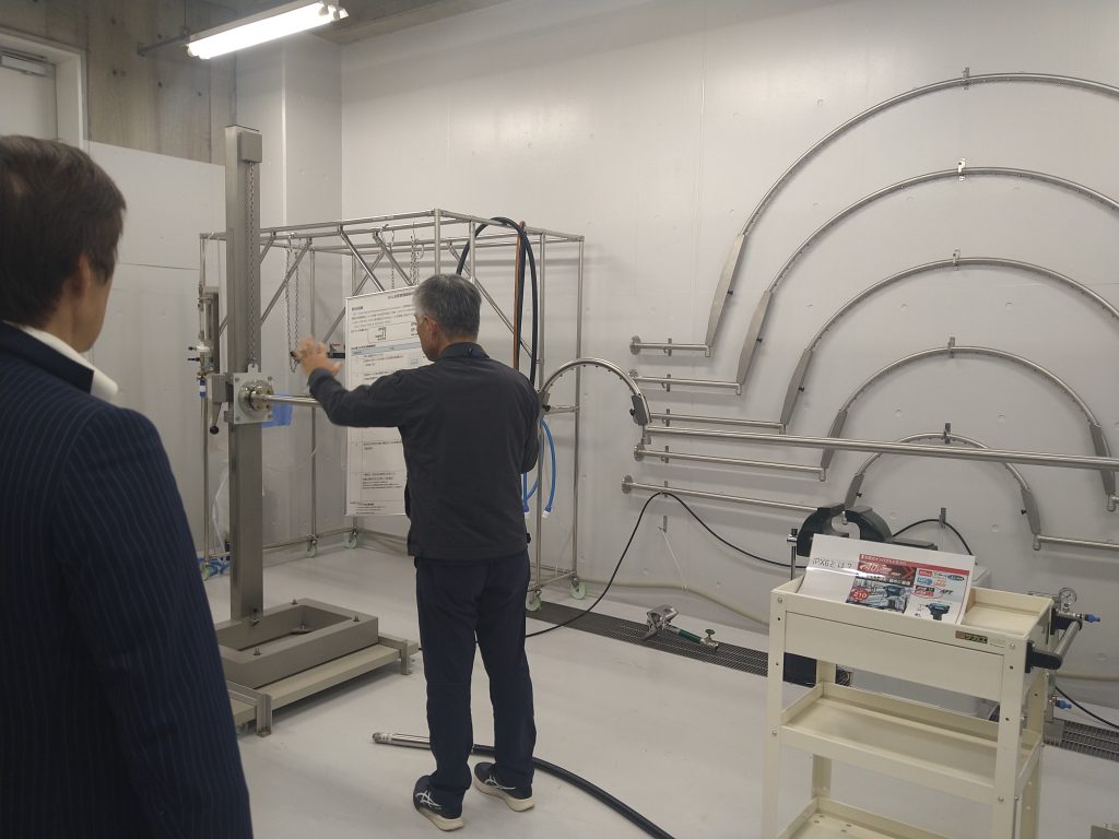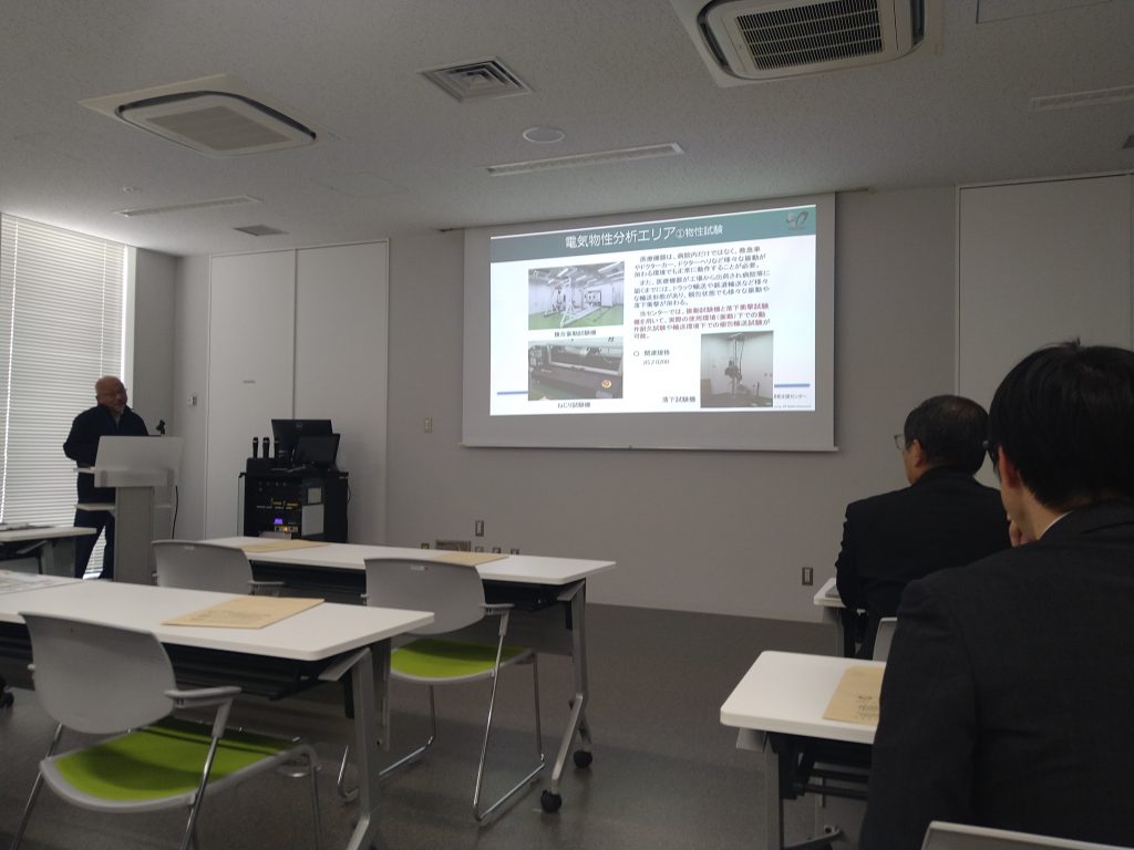 本ツアーは、福島県内における医療機器開発支援体制の実際を知っていただくことを目的とし、展示会終了後に実際のセンターの評価設備を見学する形で行われました。